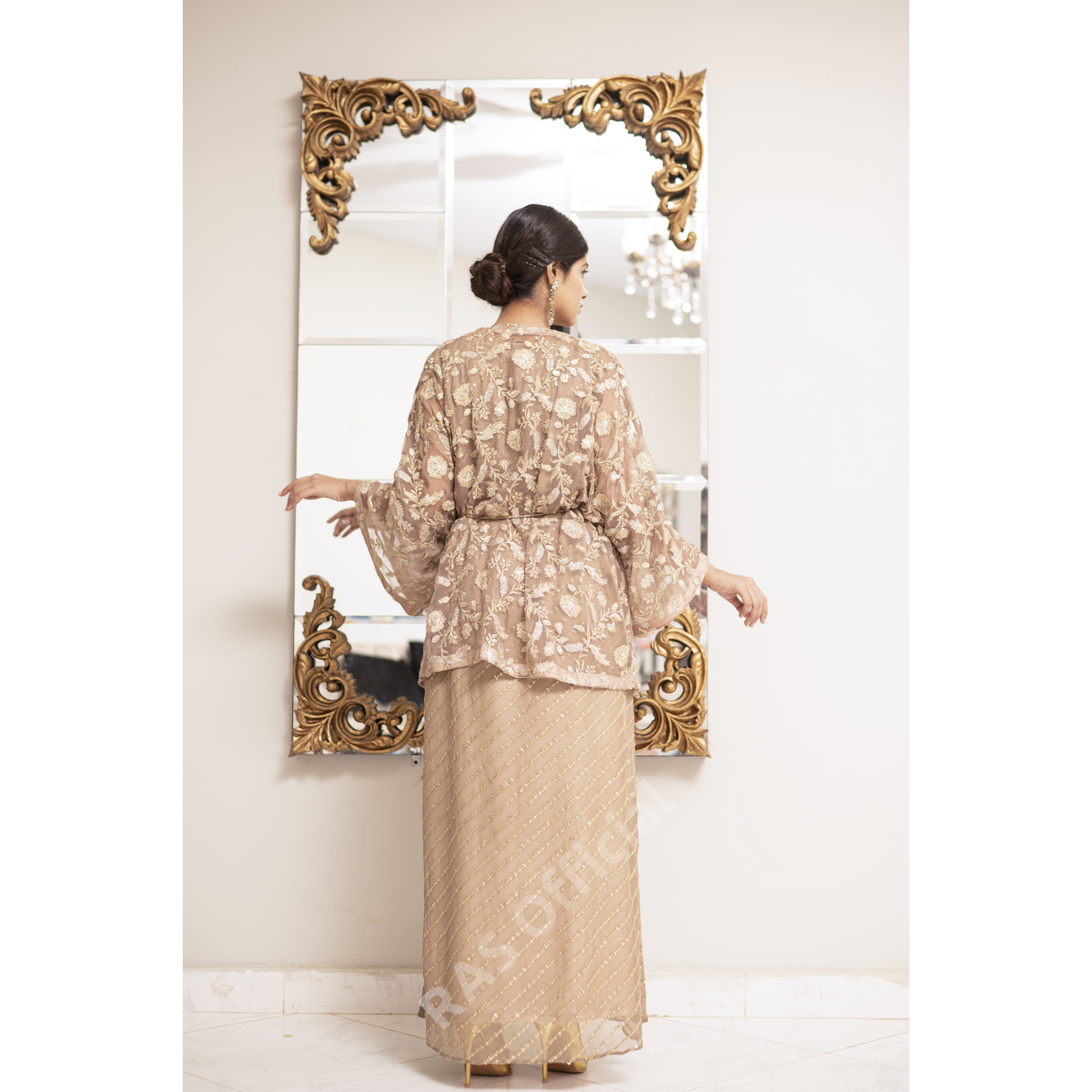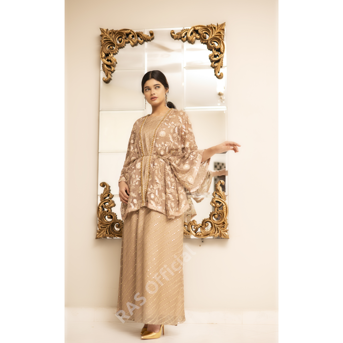 Delicately embroidered free size shrug jacket with Emb long shirt, 2 piece set.