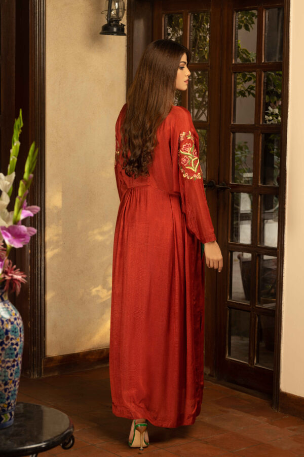 Pure kattan silk long pleated shirt with delicate resham embroidery on sleeves and neck. Length 54