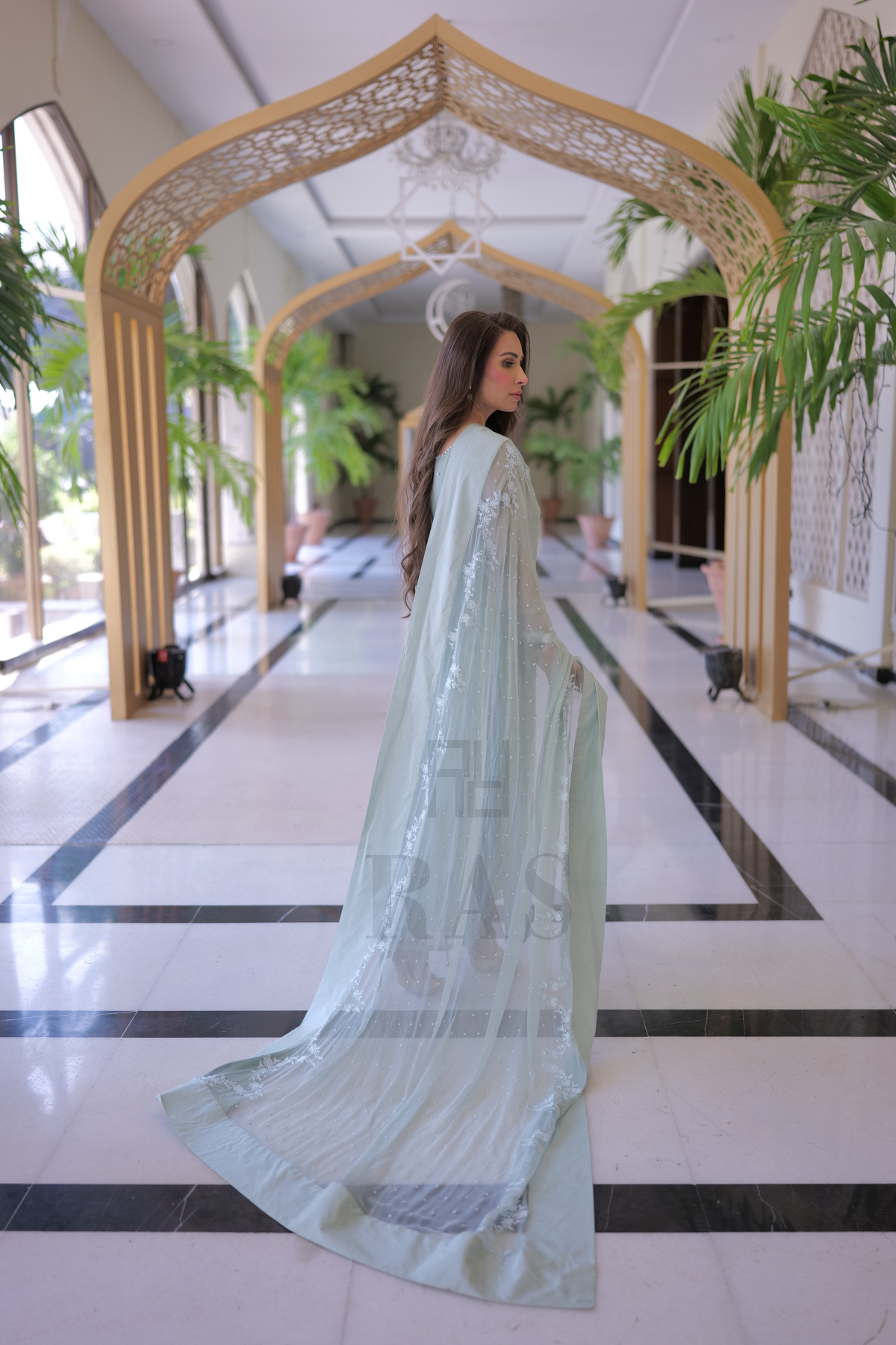 Heavily embroidered chiffon dupatta with silk finishing around. 3 yards length.