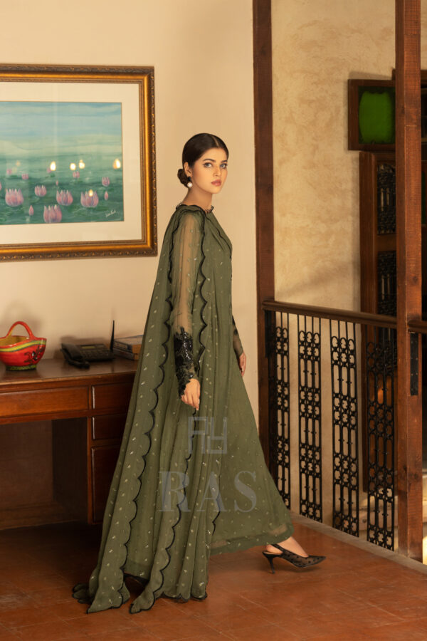 Self Embroidered Dupatta with embroidered scallops all around. 3 yards.