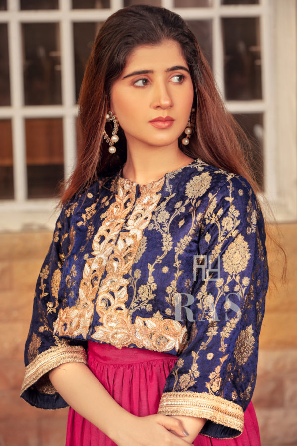 Jamawar Bolero jacket with Kora dubka hand embroidered work.